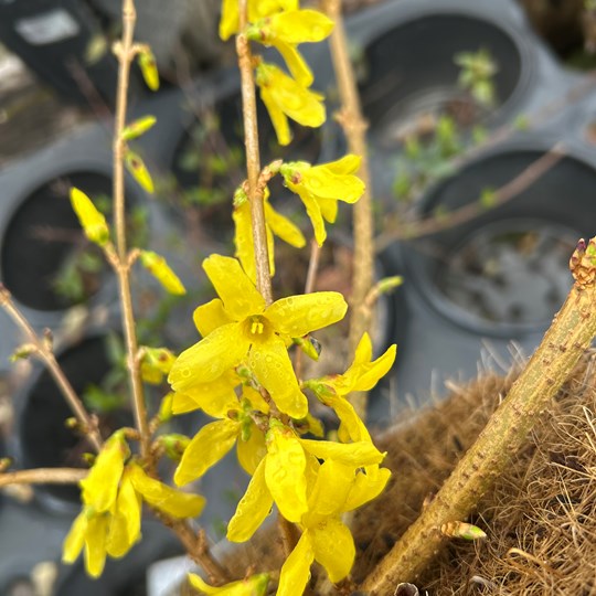 Le forsythia est un arbuste caduc offrant une floraison très précoce en mars/avril. La plante se couvre de fleurs jaunes d'or avant le feuilles.