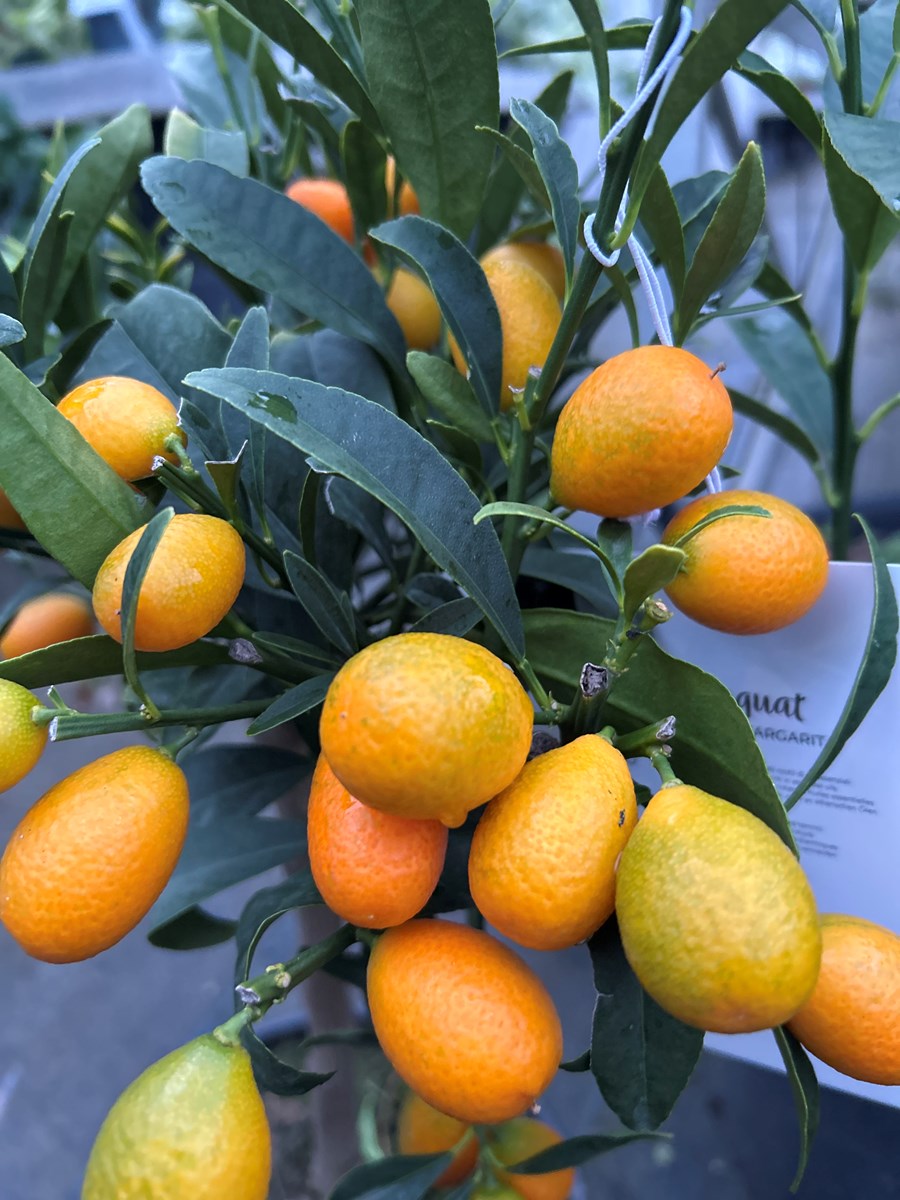 Le kumquat est un petit arbre persistant de la famille des agrumes qui donne de petits fruits doux au coeur de l'hiver. A protéger du froid en hiver.