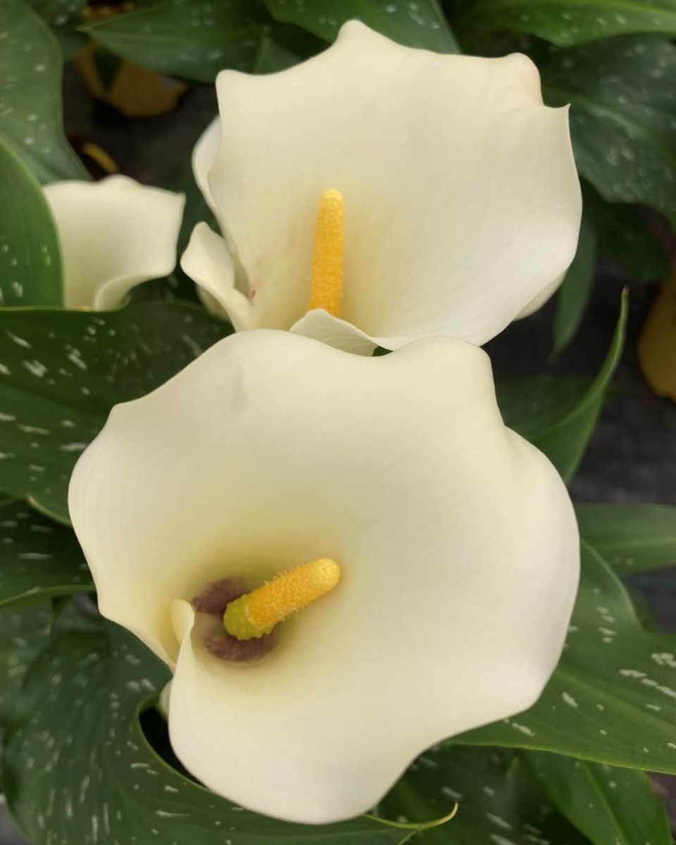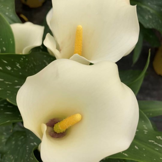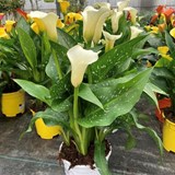 Vivace de sous bois aux feuilles larges et a fleurs blanches en cornet avec un spadice jaune.