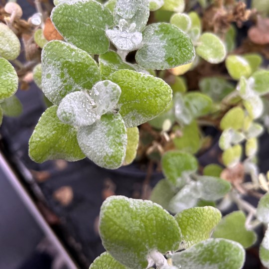 La Balotte est une vivace méditerrannéenne avec de jolies feuilles rondes duveteuses. Taillée régulièrement elle forme des volumes compacts gris pouvant atteindre 1 mètre dans les massifs. Elle résiste à la sècheresse.