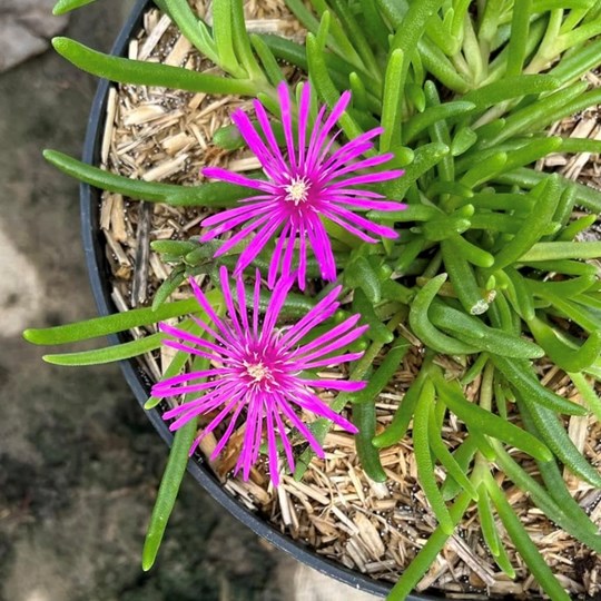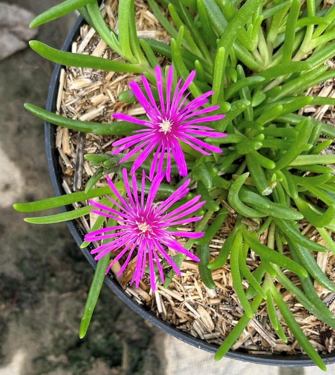 Le delosperma est une succulente formant des tapis recouverts de fleurs aux coloris métalliques, de l'été a l'automne.